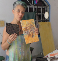 She lives in Bacalar on the Caribbean coast of Mexico. She founded the international center for visting artists "Taller Palo de Tinte Casa del Artista" which is studio, workshop space and meeting point at the same time. Find Laura's workshop as PALO DE TINTE on facebook.